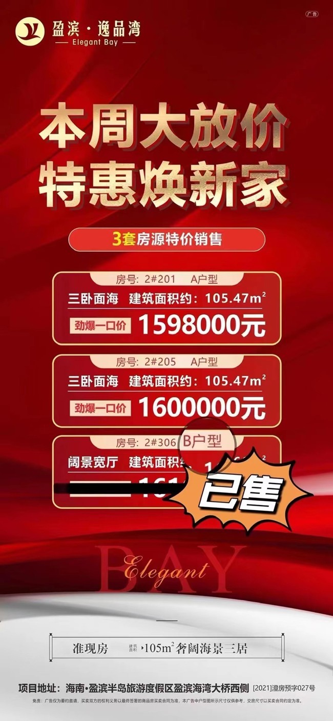 【澄迈特惠】盈滨逸品湾房源特惠在售