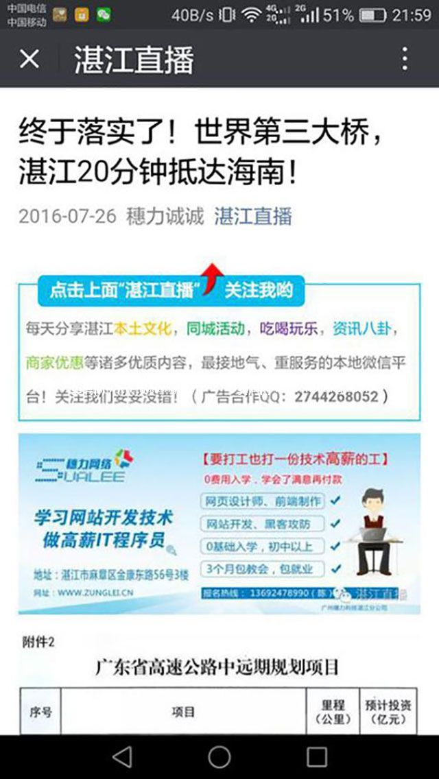 金老师仔细看了,这则把旧闻当新闻的消息来自一个叫“湛江直播”的微信公众号。别说微信公众号这种自媒体了,前几天还有几家国内的网站因违规发布新闻被管理层处理的。现在网络媒体从业人员的素质真是良莠不齐,有的自媒体连什么叫新闻都没弄懂,以其昏昏,使人昭昭,扛起半截就开跑;还有的自媒体人只为耸人听闻,表面看是造出点新闻来吸你眼球,实际上目的是骗广告商的钱,大家没注意这类微信页面上总贴有广告像狗皮膏药?因此,人们说“微信微信,只能微信”,要我说,有的根本不能信!