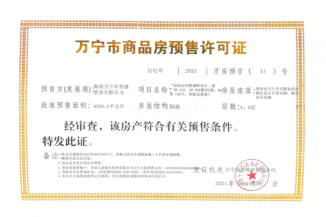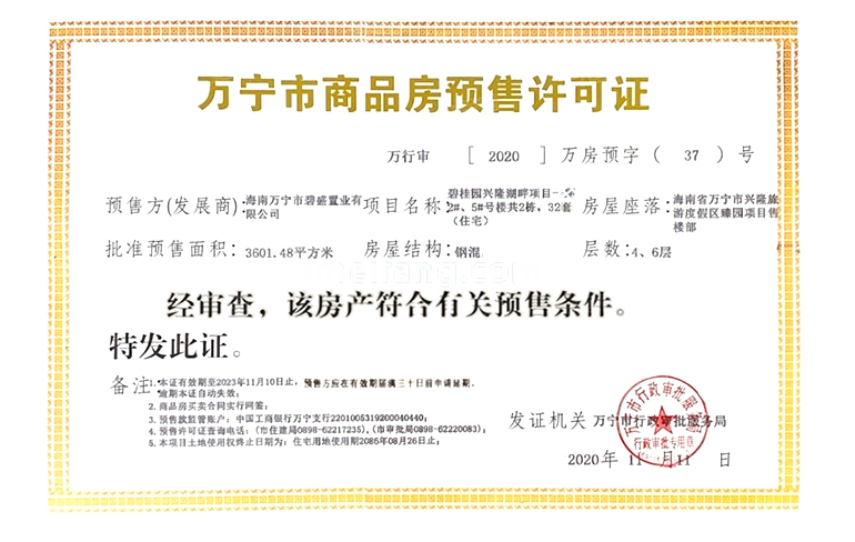 物业公司: 广东碧桂园现代生活物业管理有限公司万宁分公司