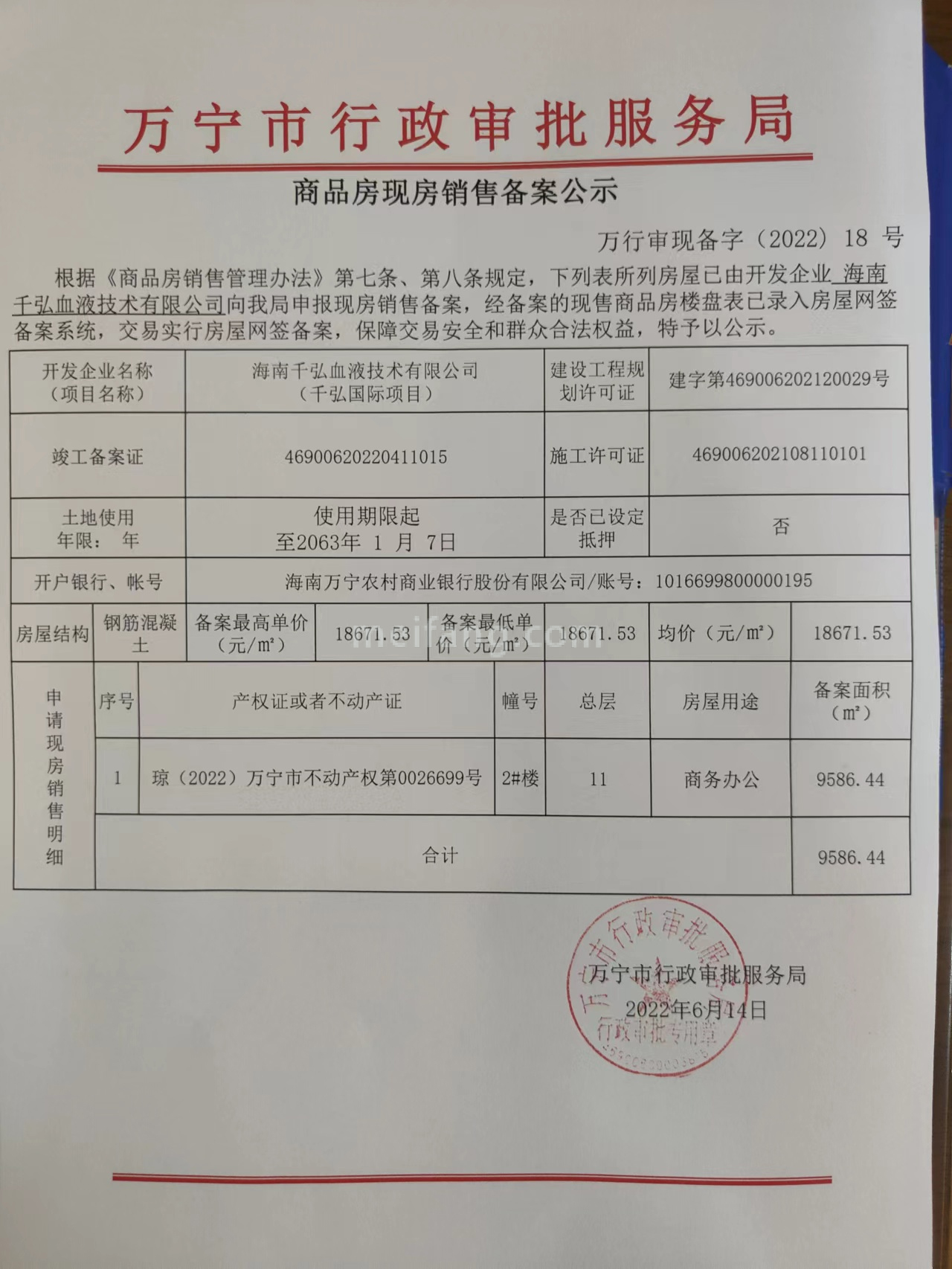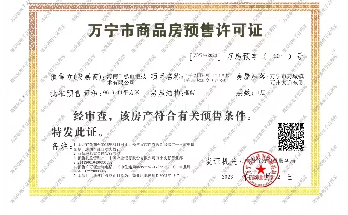 预售证号: 万行审现备字(2022)18号