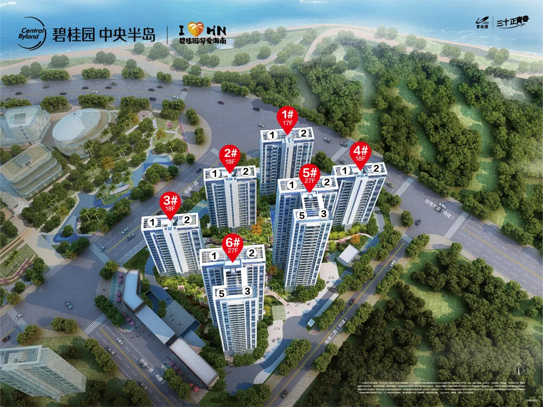 海口碧桂园中央半岛海川府在售1栋-4栋住宅,高层可看海,主力户型为建筑面积105㎡三房和建筑面积134㎡-177㎡四房,整体均价21000元/㎡,具体一房一价。绿地率40%,物业费3.2元/㎡·月,预计2024年3月精装交付,两梯两户。 [详情]