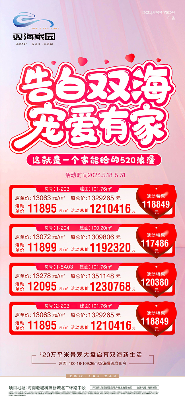 【520特惠】澄迈双海家园520特惠在售,推出4套特价房