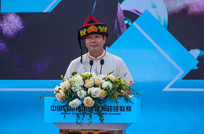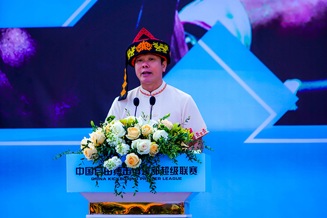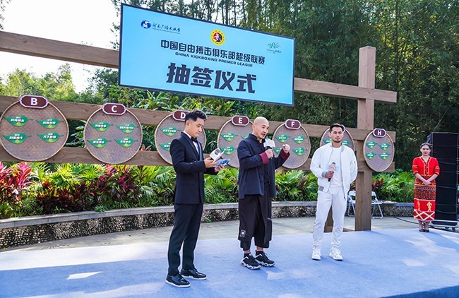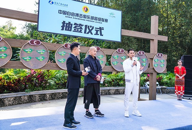海南省旅游和文化广电体育厅二级巡视员、海南省体育总会主席刘平久,国家体育总局武术运动管理中心武术搏击部主任张雷,五指山市市委副书记、市长陈国梁,河南卫视全媒体一体化运营副总监程万里,五指山市市委常委、宣传部部长喻倩,搏击巨 星一龙、魏锐等出席发布会。在现场,来自32家俱乐部抽签后被分为八个小组,每个小组中,四支队伍的对阵全部产生。现场与会嘉宾共饮山兰酒正式启动揭幕赛,并揭开了赛事冠 军奖杯,奖杯选材来自海南有着200多年的黄花梨树,名为“龙腾盛世”,寓意着武术生生不息、薪火相传。
