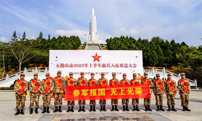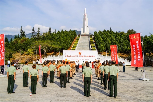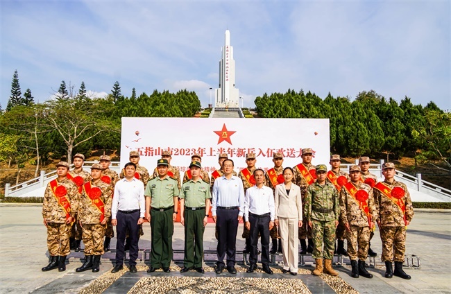3月16日上午,我市在五指山革命根据地纪念园举行2023年上半年新兵入伍欢送大会,为即将踏上军旅征程的新兵们送行。