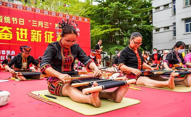 4月14日,通什镇隆重举行以“三月民族情 奋进新征程”为主题的庆祝海南黎族苗族传统节日“三月三”系列活动,活动共分为文艺汇演、织锦体验与展示、黎族织锦技艺比赛以及民族特色技艺比赛等四部分,尽享民族团结进步的成果,营造喜庆欢乐的节日氛围。