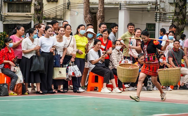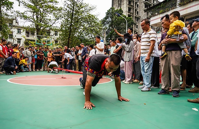 少数民族特色技艺比赛分为押加、挑山栏稻等趣味竞技活动。现场加油声、助威声、呐喊声此起彼伏,广大市民群众和游客沉浸在快乐的“三月三”节日氛围中。