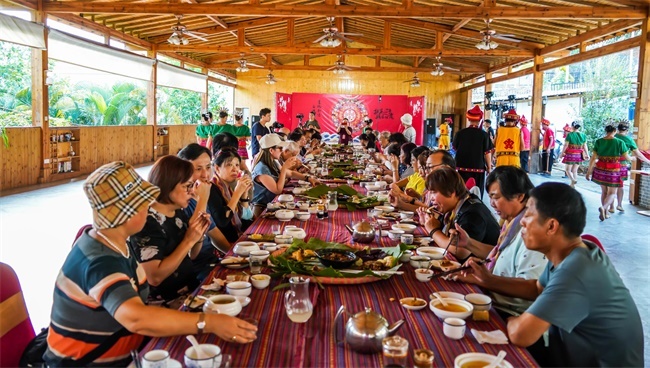 2023年4月21日,海南联合航旅集团旗下经典假期迎来首批新加坡游客入境海南旅游,此次恰逢海南黎族苗族重要的年度节日 “三月三”。4月23日晚,一行五十位贵宾在五指山享用了一顿丰盛美味又充满地方特色的美食盛宴-长桌宴。