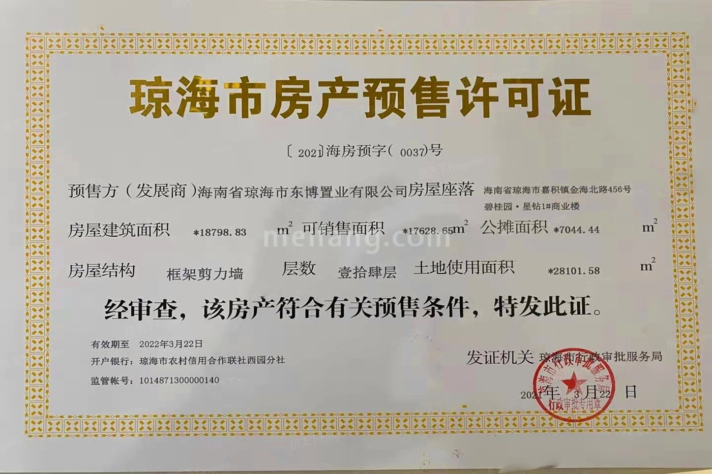 预售证号: 【2021】海房预字(0075)号