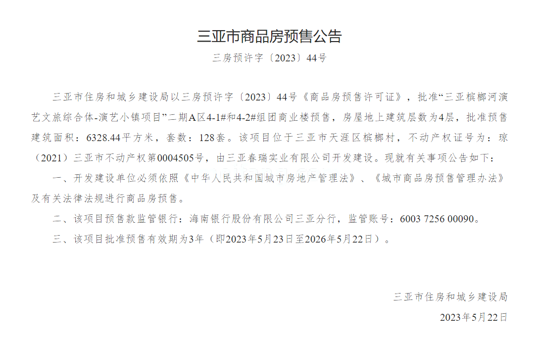 预售证号: 三房预许字〔2023〕44号