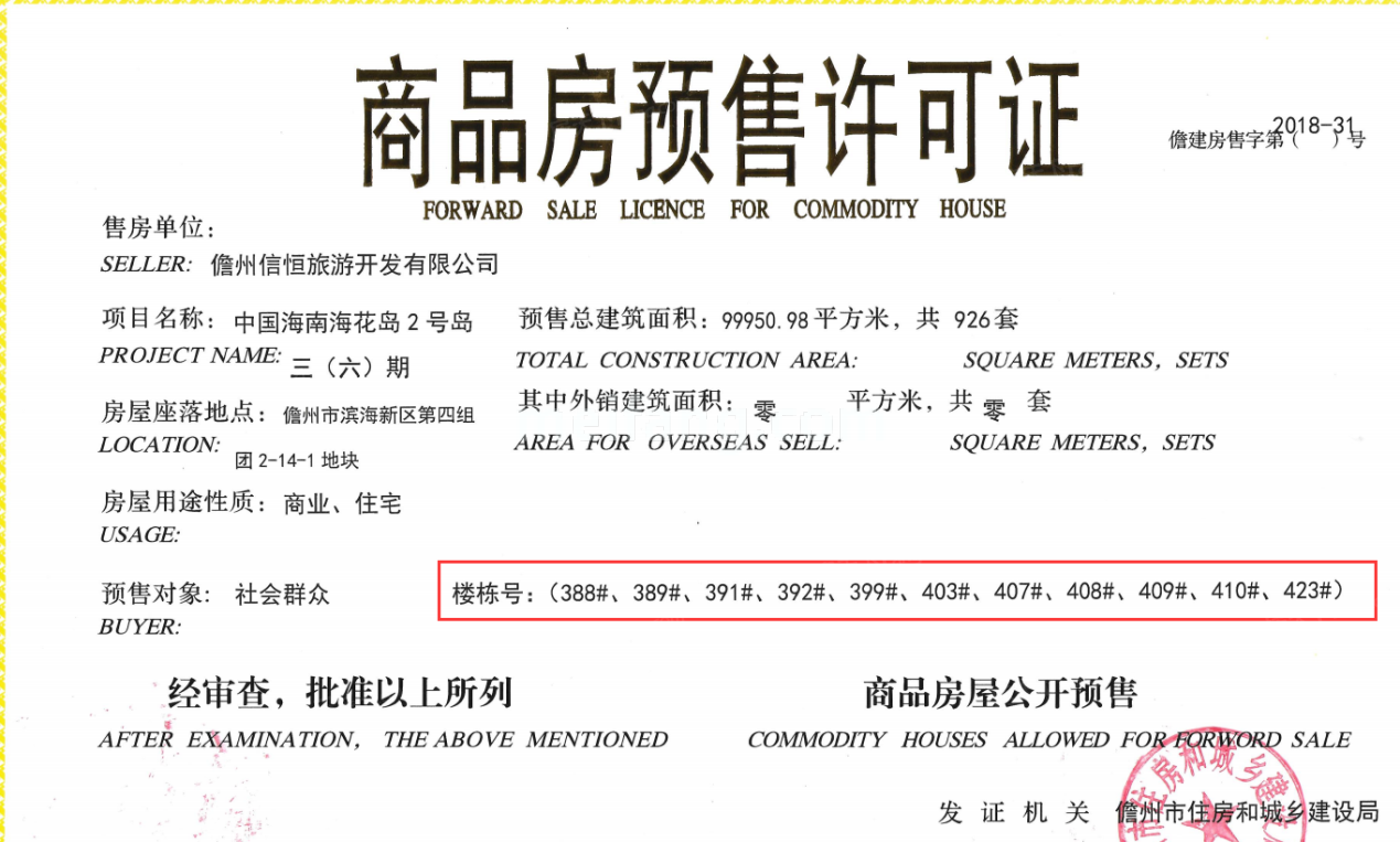 - 儋建房售字第2018-31号