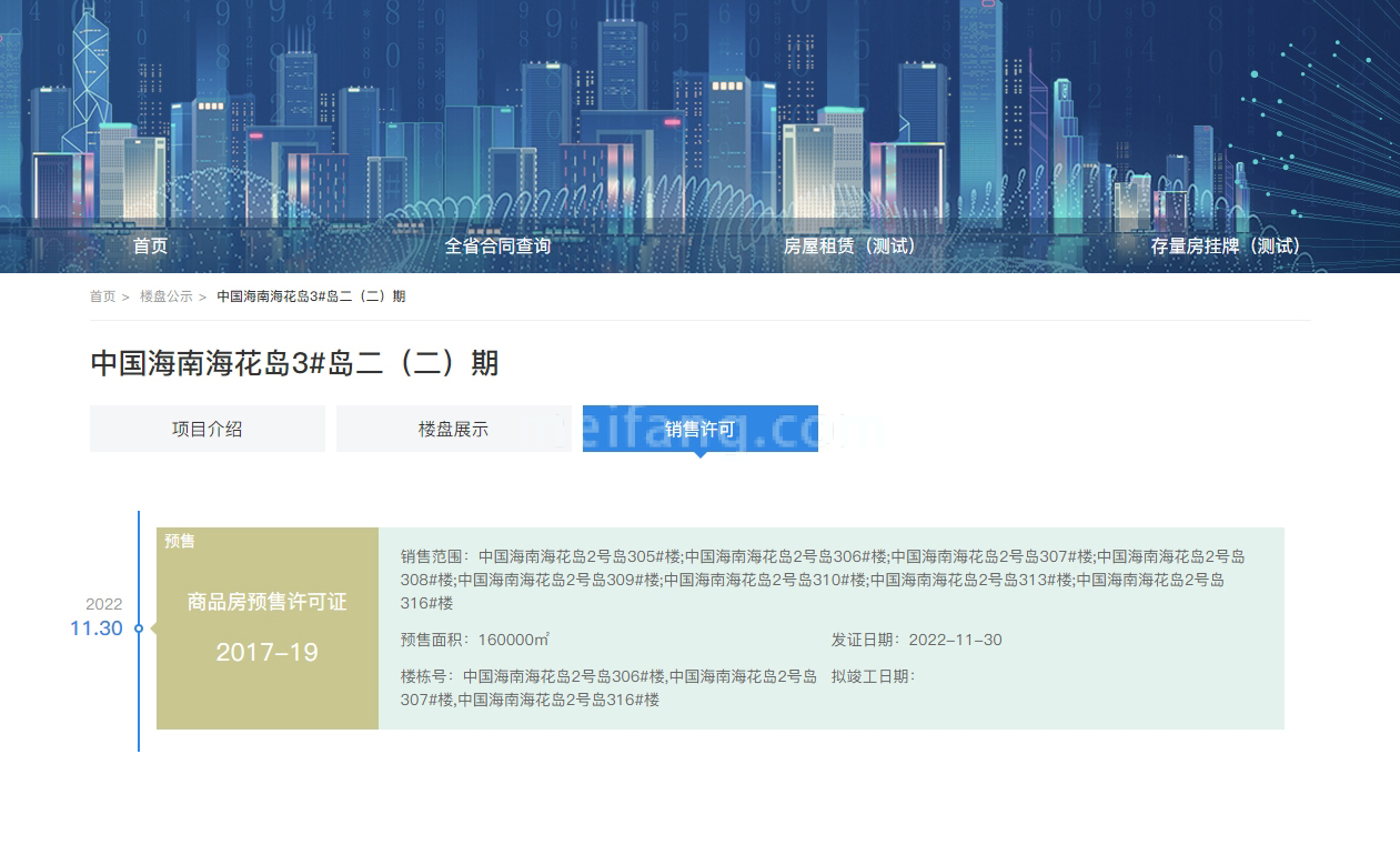 - 2号岛305#楼;2号岛306#楼;2号岛307#楼; 花岛2号岛308#楼;中国海南海花岛2号岛309#楼;中国海南海花岛2号岛310#楼;中国海南海花岛2号岛313#楼;中国海南海花岛2号岛316#楼