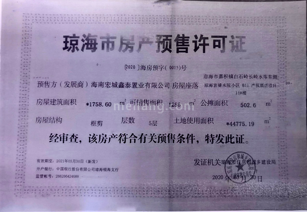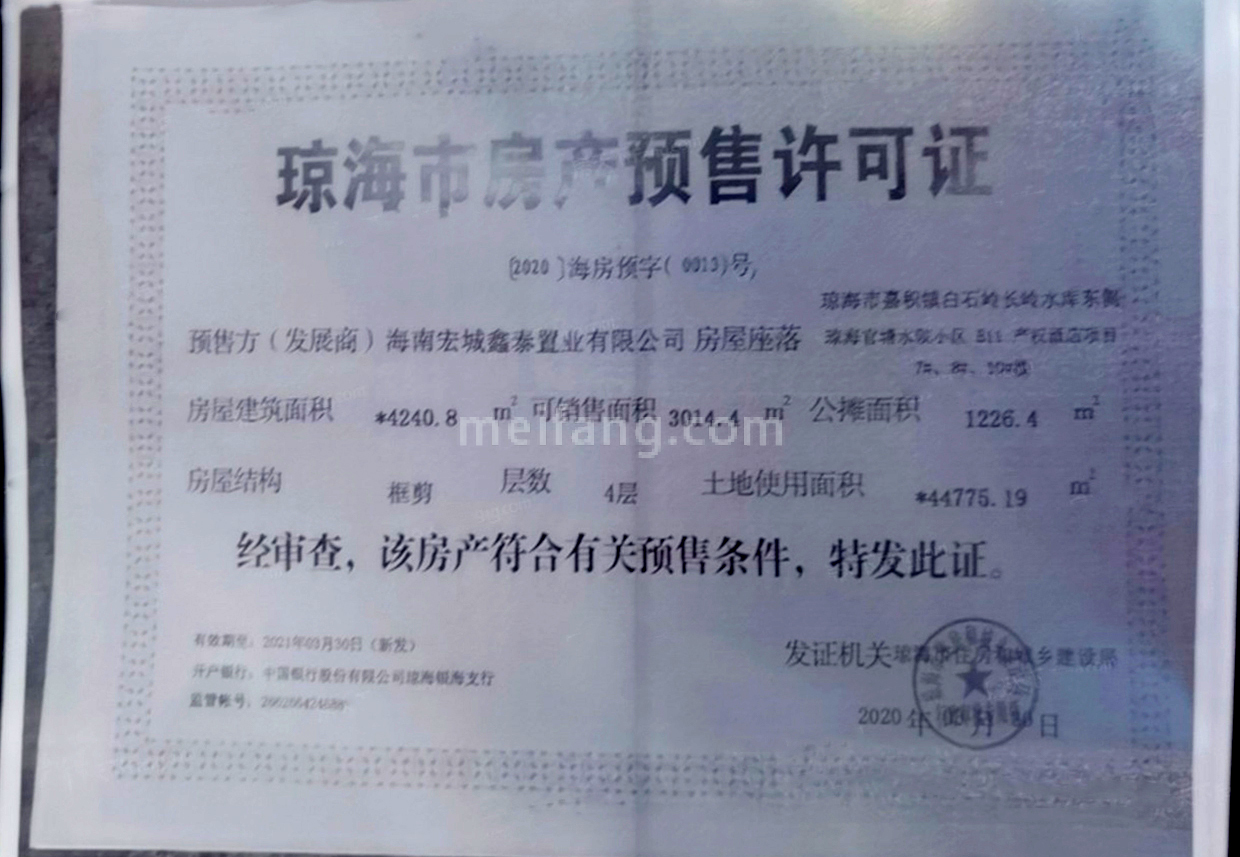 预售证号: 【2020】海房预字(0015)号