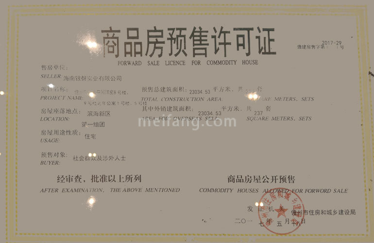 预售证号: 【2018】儋房预字(49)号