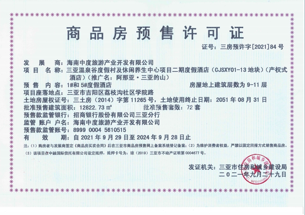 预售证号: 三房预许字[2021]84 号