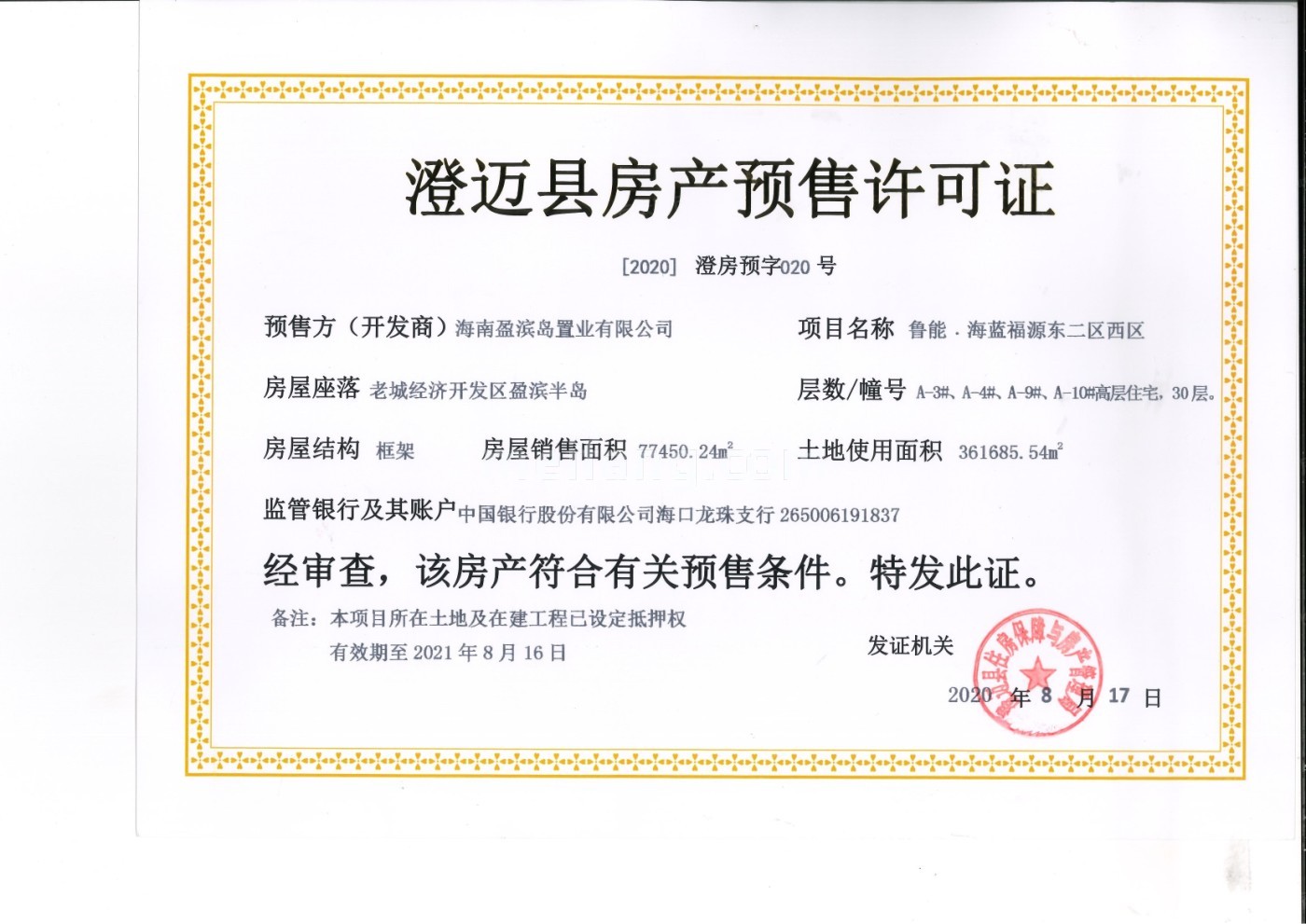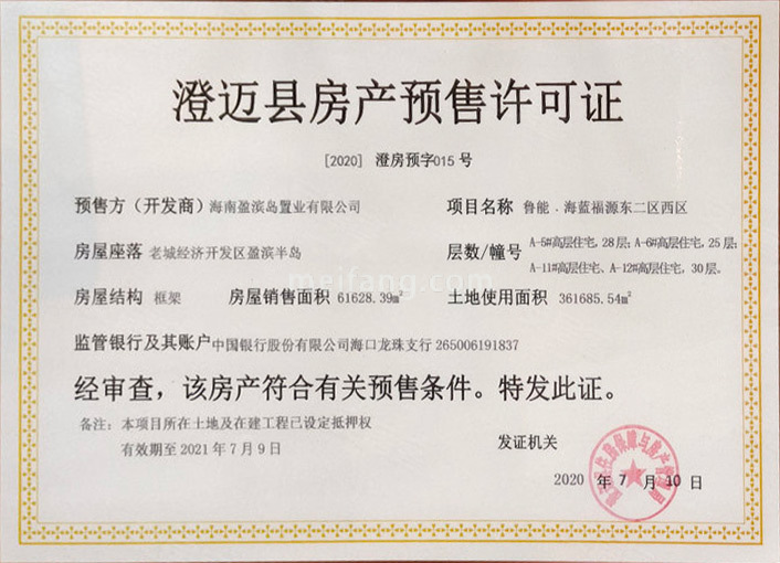 预售证号: 【2021】澄房预字(045)号